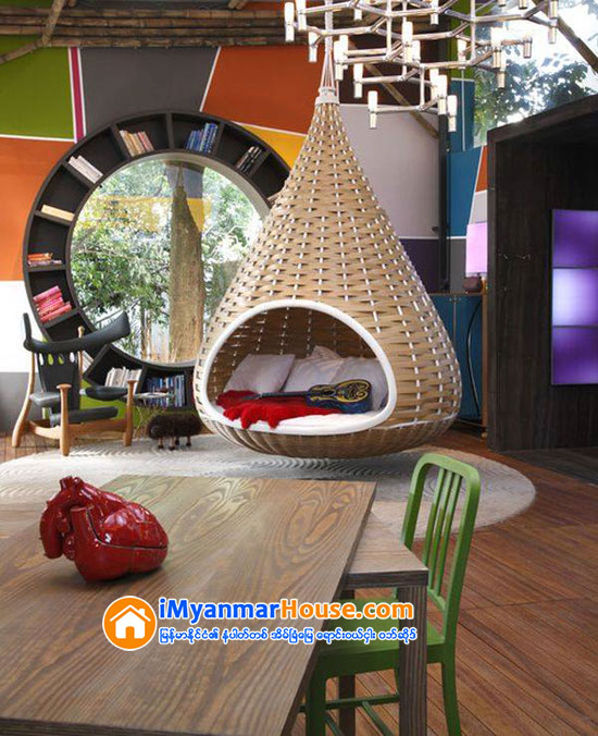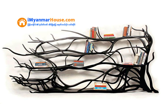 ၁။ နံရံေပၚမွာ သာမန္ေလးေထာင့္ဆန္ဆန္ စာအုပ္စင္မ်ိဳးေတြမ ဟုတ္ပဲ အခုလုိဆန္းၾကယ္တဲ့ ဒီဇုိင္းနဲ႔ ပံုေပၚထားတဲ့ သစ္ပင္အခတ္ အလက္ေတြလုိမ်ိဳး စင္ကေလးေတြ ဖန္တီးျပင္ဆင္လုိက္ပါ။