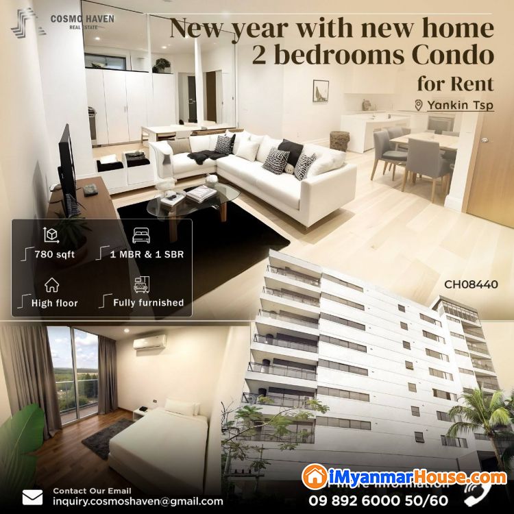 New year with new home, 2 bedrooms Condo for RENT at Yankin, Yangon 🎏🥂