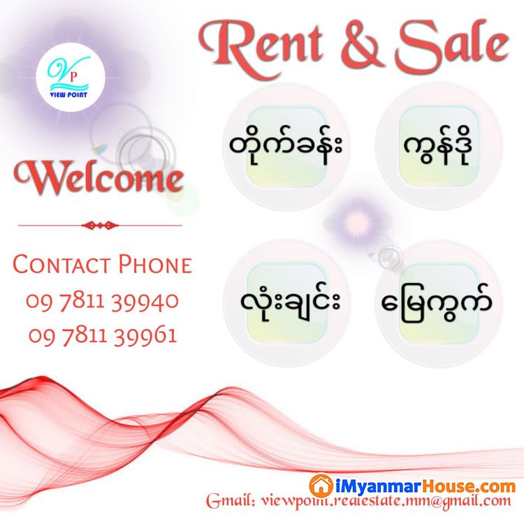 အခြားကွန်ဒို ငှား/ရောင်း စာရင်းများကိုလဲ ကြည်ရှု့ရန် #ViewcondoS ကိုနှိပ်ပြီးကြည့်လို့ရပါတယ်ရှင့်