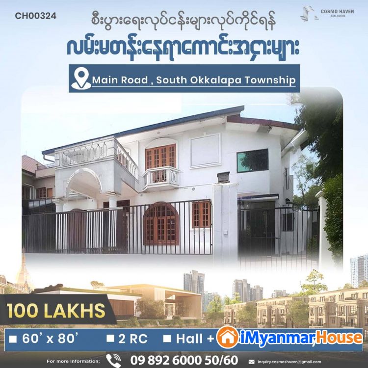 လူကြီးမင်းတို့၏လုပ်ငန်းနှင့်ကိုက်ညီမှုရှိသော အိမ်ခြံမြေနေရာအချက်အလက်များကို အချိန်ခနအတွင်းဝင်ရောက်ရွေးချယ်ရှာဖွေနိုင်ပြီး အကောင်းမွန်ဆုံး ဝန်ဆောင်မှုများကိုရယူရန် Cosmo haven real estateကို ယခုဘဲဆက်သွယ်လိုက်ပါ...