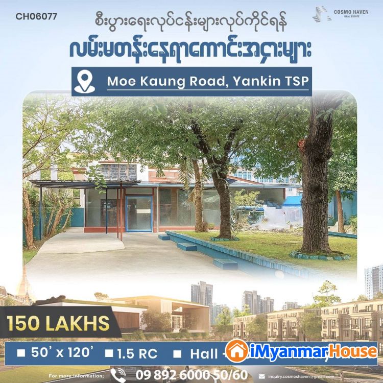 လူကြီးမင်းတို့၏လုပ်ငန်းနှင့်ကိုက်ညီမှုရှိသော အိမ်ခြံမြေနေရာအချက်အလက်များကို အချိန်ခနအတွင်းဝင်ရောက်ရွေးချယ်ရှာဖွေနိုင်ပြီး အကောင်းမွန်ဆုံး ဝန်ဆောင်မှုများကိုရယူရန် Cosmo haven real estateကို ယခုဘဲဆက်သွယ်လိုက်ပါ...