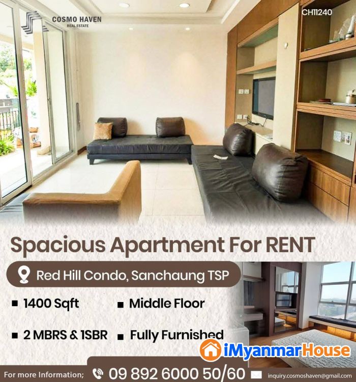 Spacious 3bedrooms for RENT @Red Hill Condo @Sanchaung Tsp 🌃✨