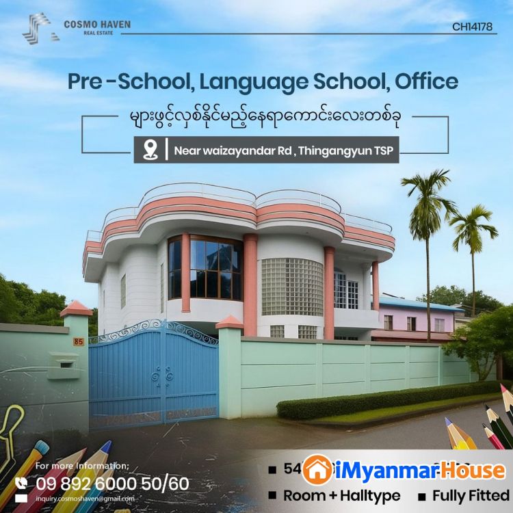 🛣 ဝေဇယန္တာလမ်းမကြီးအနီး ကိုယ်ပိုင်ခြံဝန်းကျယ်ကျယ်ဖြင့် 👩🏾🏫Pre -School, 🉐Language School, 🗃️Office များဖွင့်နိုင်မည့် အိမ်ကောင်းလေးတစ်ခု🚌 သွားလာရလွယ်ကူပြီး၊ 🛍️ဈေးဆိုင်ခန်းများ၊🚏ကားဂိတ်များနှင့်မဝေးသည့်အပြင်ကားပါကင်အတွက်စိတ်ပူစရာမလိုတဲ့နေရာလေးဖြစ်လို လုပ်ငန်းရှင်များလုပ်ကိုင်ရန် အထူးသင့်တော်သောနေရာလေးတစ်ခုကို Cosmo Haven မှဖော်ပြပေးလိုက်ပါတယ်ခင်ဗျာ။🪔🪔🪔