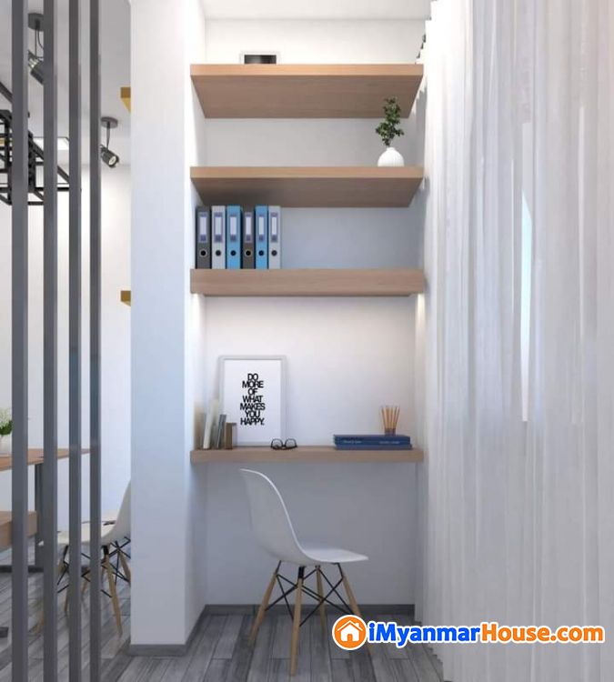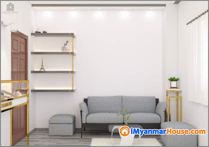 Primer ဆေးအကောင်းစားသုတ်ထားပါတယ်။မီးဆိုင်းအလှ ၊Oppalမီးသီးများတပ်ဆင်ထားပေးပါတယ်၊ကြမ်းခင်းကို ရေစိုခံ SPC ခင်းထားပြီး နံရံကပ်စင်ပါဝင်ပါတယ်။