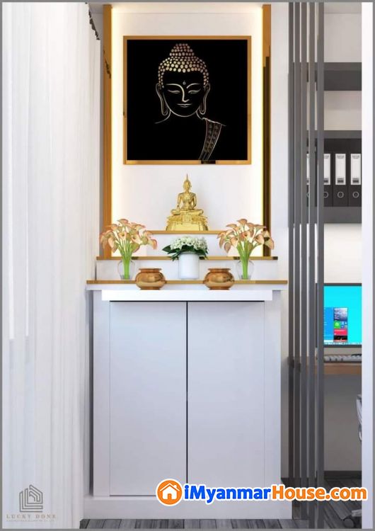 ဘုရားခန်း၁ခန်း ဘုရားစင်အပါ၊လိုက်ကာအပါ၊ နံရံကပ်စင်များအပါ၊လူတယောက်အိပ်လို့ရပါတယ်။