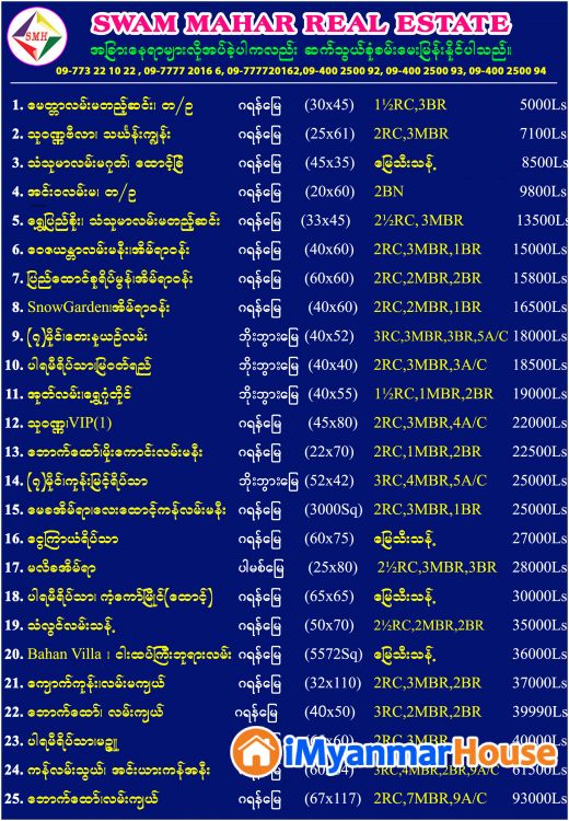 👉 https://www.facebook.com/swammaharrealestate/ page ကို Like & Share လုပ်ပြီး သိချင်တာများစောင့်ကြည့်မေးမြန်းနိုင်ပါသည်။