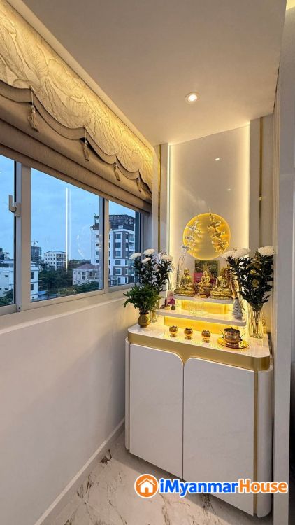 လေးနဲ့လိုက်ဖက်အောင် ပြင်ဆင်ထားတဲ့အတွက် ခြေလှမ်းတိုင်းမှာရွှေရောင်လွှမ်းပြီး ကျက်သရေမင်္ဂလာအပေါင်းနဲ့ ပြည့်စုံတဲ့ Condo လေးဆိုလည်းမမှားဘူးနော်