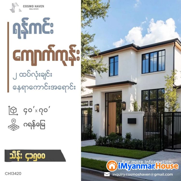 🖼️🔍ရန်ကုန်မြို့ရဲ့လူအများမျက်စိကျရာနေရာတစ်ခုဖြစ်သည့်အပြင်လူနေထိုင်ဖို့အတွက်သာမကစီးပွားရေးအတွက်ပါရွေးချယ်သင့်တဲ့နေရာကောင်းဖြစ်ပြီး မိုးကောင်းဆေးရုံ ,ကန်ဘဲ့ Condo ,International School , Restaurant များအနီးတွင်တည်ရှိသောကြောင့်လူကြီးမင်းတို့ရဲ့ဘ၀လိုအပ်ချက်တွေပါဖြည့်ဆည်းပေးနိုင်မယ့်နေရာကောင်းလေးတစ်ခုဖြစ်တာကြောင့်စိတ်၀င်စားလို့လိုက်လံကြည့်ရှုလိုပါက ကျွန်မတို့ Cosmo Haven Estate ကိုဆက်သွယ်ရွေးချယ်၀ယ်ယူနိုင်ပါပြီရှင်。。。
