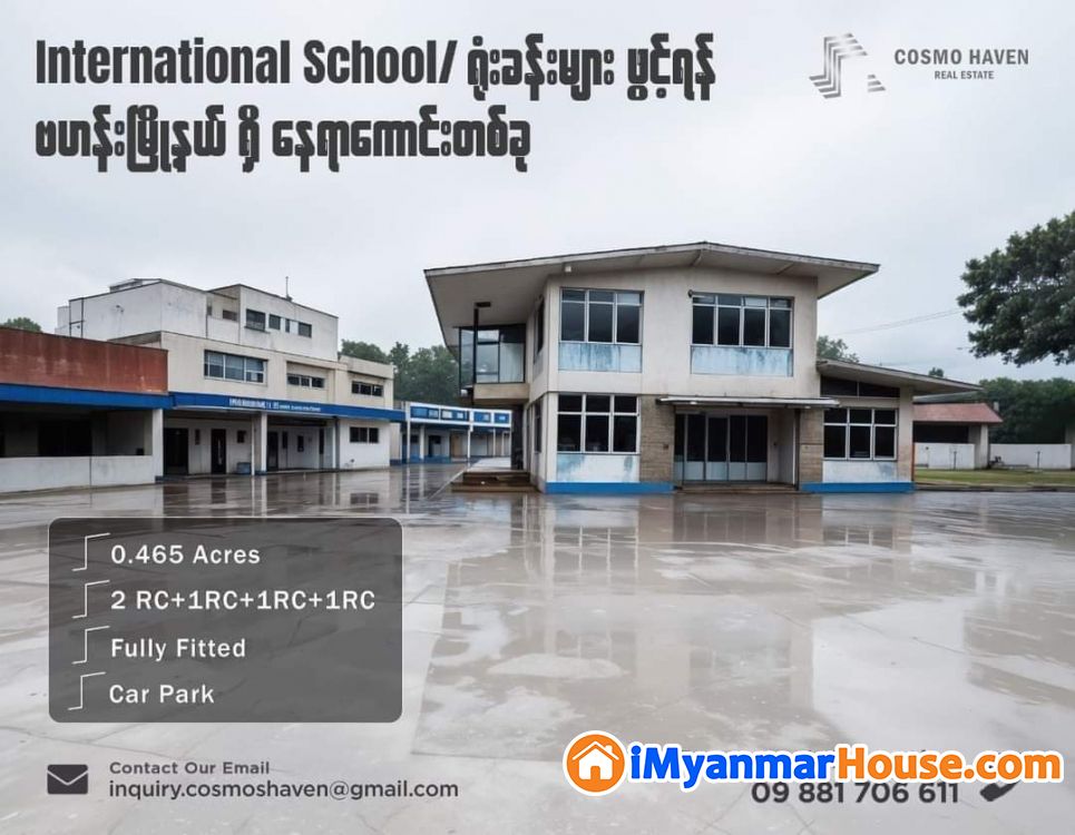 🏡အဆင်သင့်အသုံးပြုနိုင်သော Building အနေအထား ရှိပြီး ကျယ်၀န်း သောခြံကျယ် ပါ၀င်တဲ့အတွက် ကားပါကင်အတွက်ဖြစ်စေ၊🛝Play Ground Area အတွက်ဖြစ်စေ လုံလောက်သော နေရာရရှိပြီး🙋♂️ ကျောင်းသားဦးရေးများများဆံ့နိုင်ရန် နှင့် 👩🏫Teacher များ နားနေနိုင်ရန်အတွက် အခန်းများပါဝင်တာကြောင့် International School, Pre School တို့ ဖွင့်ရန်အတွက် နေရာရှာဖွေနေတဲ့ လုပ်ငန်းရှင်များအတွက် အကြိုက်တွေစေမယ့်နေရာကောင်းတစ်ခုကို အတွက်မိတ်ဆက်ပေးလိုက်ပါတယ်ရှင့် 😊😊