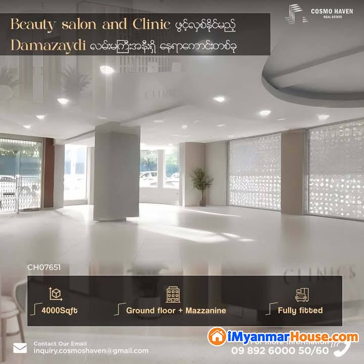 ဓမ္မစေတီလမ်းမကြီးအနီး ဆိုင်ခန်းများဖြင့်စည်းကားလျက်ရှိသောနေရာတွင် လုပ်ငန်းများအ‌ကောင်ထည်ဖော်ချင်တဲ့ လုပ်ငန်းရှင်လူကြီးမင်းများအတွက် နေရာကောင်း‌ လေးတစ်ခု😍😍🍂🍂 💅🏻 Beauty Salon and Clinic၊ 🩻Special Clinic များဖွင့်လှစ်ရန်အကောင်းဆုံးနေရာတစ်ခုဖြစ်သည့်အပြင် 🔏အများအပြားပြင်ဆင်စရာမလိုဘဲ အသင့်အသုံးပြုနိုင်တဲ့ နေရာကောင်းတစ်ခုဖြစ်လို လုပ်ငန်းရှင်တို့ မှန်ကန်စွာရွေးချယ်နိုင်စေရန် ရွေး‌ချယ်‌ဖော်ပြပေးလိုက်ပါတယ်ရှင🤗🤗🤗