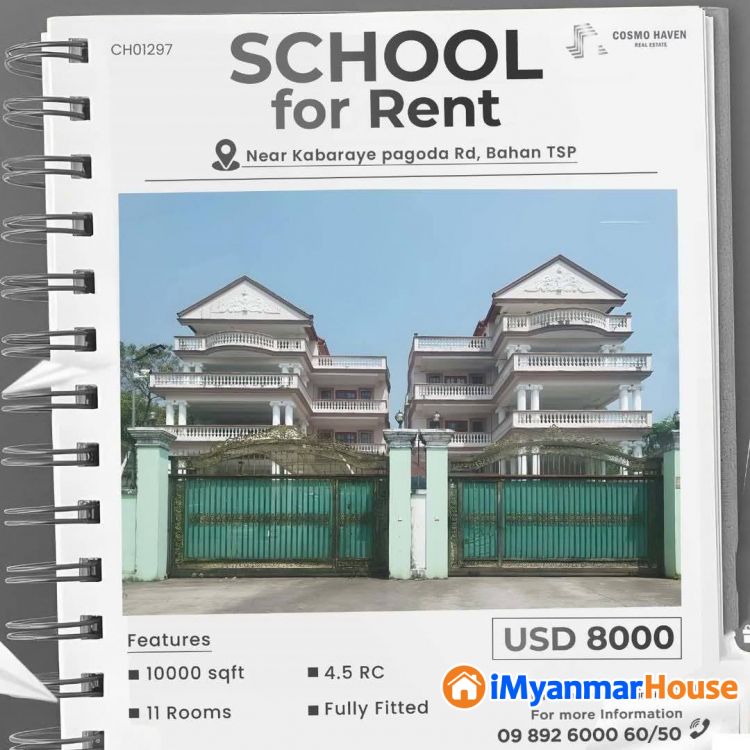 🏢 International School, 🏨 Per - School, 🏤 Pravite School များ, 👨🏫 သင်တန်းကျောင်းများကို လိုအပ်သလိုပြင်ဆင်ဖွင့်လှစ်နိုင်ပြီး ကျောင်း Standard နဲ့အညီ အခန်းပေါင်းများစွာပါ 🧑🎓ကျောင်းများဖွင့်လှစ်ရန်အကောင်းဆုံးနေရာတစ်ခုအပြင် Branding လုပ်ရန်အကောင်းဆုံး နေရာကောင်း မြိုနယ်စုံမှာတည်ရှိတဲ့ နေရာကောင်းများကို လွယ်ကူလျှင်မြန်စွာ ရွေးချယ်နိုင်စေရန် Cosmo Haven မှ တစုတစည်းတည်းဖော်ပြပေးလိုက်ပါတယ်ရှင့်💁💁✌️🆙️🆙️🆙️