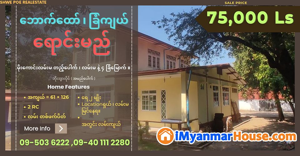 #ဘောက်ထော်မိုးကောင်းလမ်းမနီးလုံးချင်းခြံကျယ်ရောင်း
