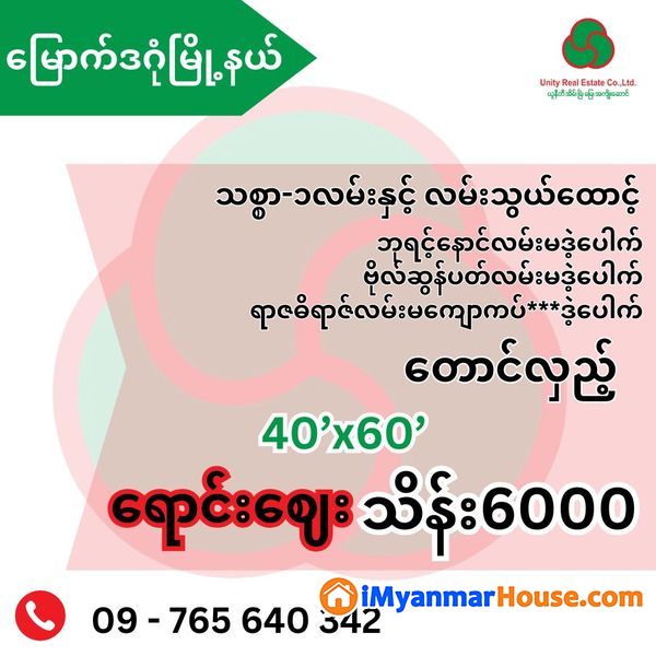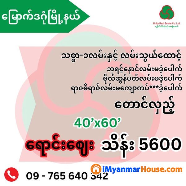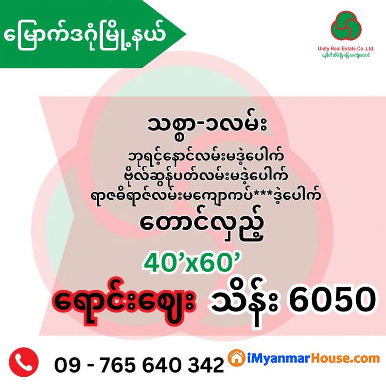 áááºááááá¯áááºáá±á¬á· âïž 09 765 640 342 ð°Unity Real Estate ááá¯á· áááºááœááºááá¯ááºáá«áááºáð