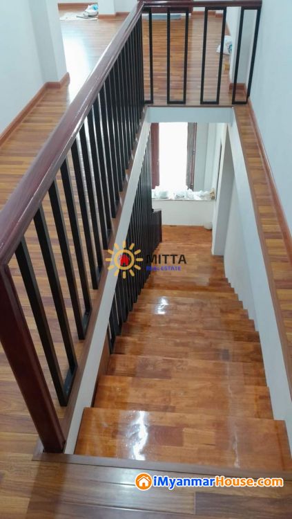 အိမ် အပေါ်ထပ်တွင် Master bed room နှစ်ခန်း နှင့် ကျယ်ဝန်းသော ဧရိယာ နှင့် ဘုရားခန်း