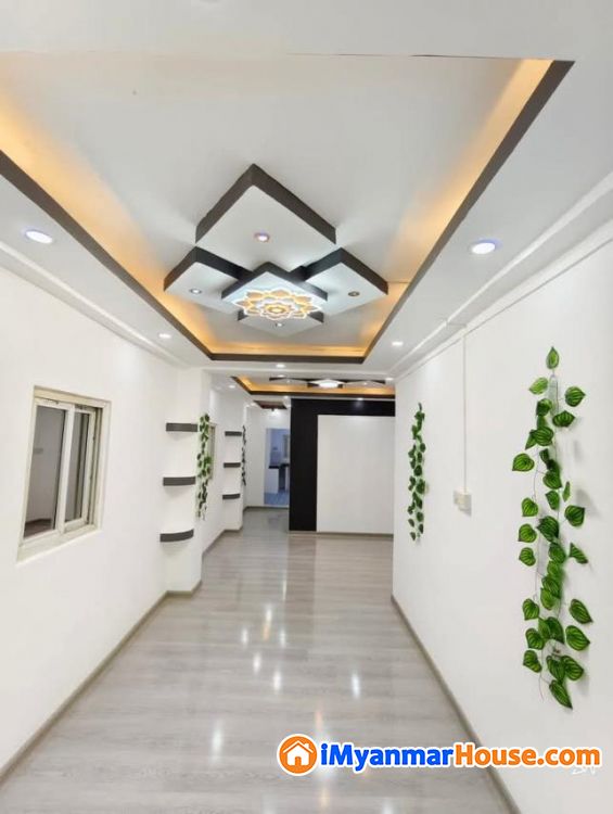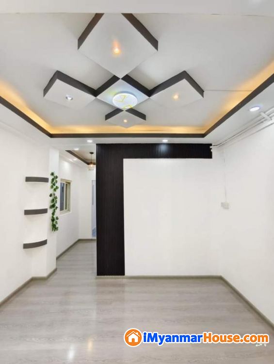 🏡တိုက်သက်တမ်း ၄ နှစ်ဝန်းကျင် / ကိုရီးယားပါကေးခင်းပြီး/ မီးအလှဆင်ပြီး / ဆေး/ မျက်နှာကျက် များ/ အိပ်ခန်း (၁) ခန်းပါပြီး / ဘိုထိုင်/ မီးဖိုချောင် ကြွေပြားခင်