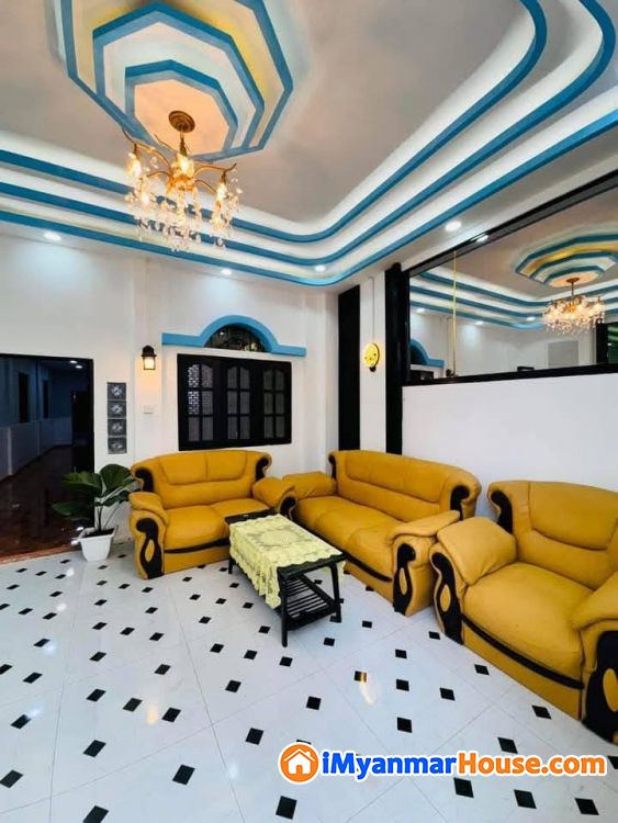 • ဧည့်ခန်းတွင် Sofa Set တန်ဖိုး (၁၈) သိန်း၊ Customized TV စင်ပါဝင်