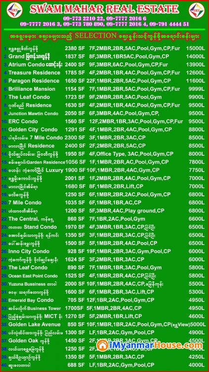 #KanbaeTower #StarVilla #GoldenRose Condo #Paragonresidence #RiverViewPoint Condo #JunctionMawtin #InyaRoad #GoneyiResidence ð¯