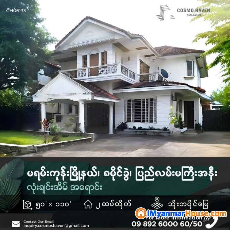 ခြံဝန်းအတွင်း ကားအစီးရေများစွာ ရပ်နားနိုင်ပြီး မိသားစုနှင့်အတူ သက်တောင့်သက်သာ နေထိုင်နိုင်မည့် ☑နေရာကောင်းတစ်ခု ဖြစ်သောကြောင့် ရယူပိုင်ဆိုင်ရန်အတွက် Cosmo Haven Real Estate သို့ 🔜ဆက်သွယ်လိုက်ပါရှင်😊⚡⚡