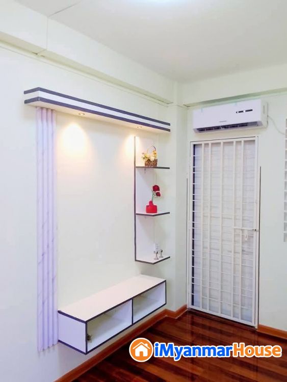 အိပ်ခန်းကျယ်(1) ခန်း , Aircon (1) လုံး , ပါကေးခင်း , ဧည့်ခန်းကျယ်, ဘိုထိုင်အိမ်သာ , မီးအလှဆင် , ကြွေပြားခင်း/ကပ်, cabinet များပါ , TV စင် , သံပန်း ဆန်းရှိတ် ပတ်လည်တပ်ဆင်ပြီး , ရှေ့ ဝရံတာပါ , တိုက်သက်တမ်းနု အခန်းကောင်းလေး