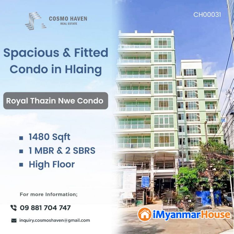 အခန်းလေးကို အမြန်ဆုံးပိုင်ဆိုင်နိုင်ဖို့အတွက် Cosmo Haven Real Estate သို့ ဆက်သွယ်မေးမြန်းနိုင်ပါတယ်ခဗျ။