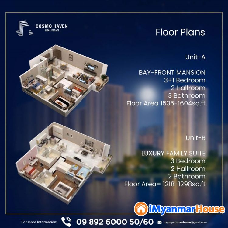 အသေးစိတ်သိရှိလိုပါက Cosmo Haven Real Estate သို့ အခုပဲဆက်သွယ်မေးမြန်းနိုင်ပါတယ် ခဗျ 🙏🙏🙏🙏🙏🙏