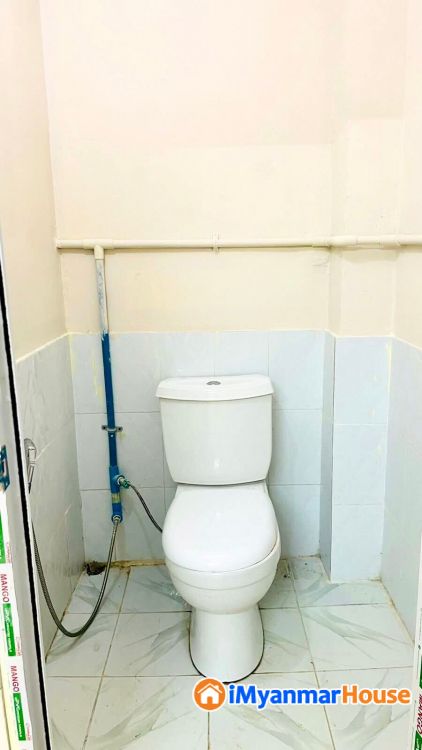 အိမ်နောက်ဖေး လည်း တော်တော် ကျယ် ကြွေပြား အပြည့်ခင်းထား / အိမ်သာဗိုလ်ထိုင်/ တီဗီစင် / eco woodများ နှင့်ကြည့်မှန် အချပ်ကြီး တစ်ခု / ဆေးလိုင်း မီးလိုင်း အသစ်