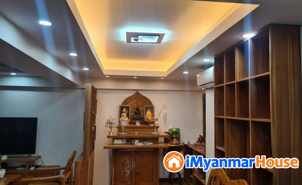 မြန်မာ့ဂုဏ်ရောင်ကွန်ဒို၊ 1250 Sqft၊ အဆင့်မြင့် ပြင်ဆင်ပြီး၊ ပါကေးအပြည့်၊ Master ၁ ခန်း၊ Single ၂ ခန်း၊ အခန်းတိုင်း Air Con ပါပြီး၊ Inverter၊ မီးအားမြှင့်စက်၊ ရေပူရေအေး၊ Auto ရေတင်စက် ပါသည်။