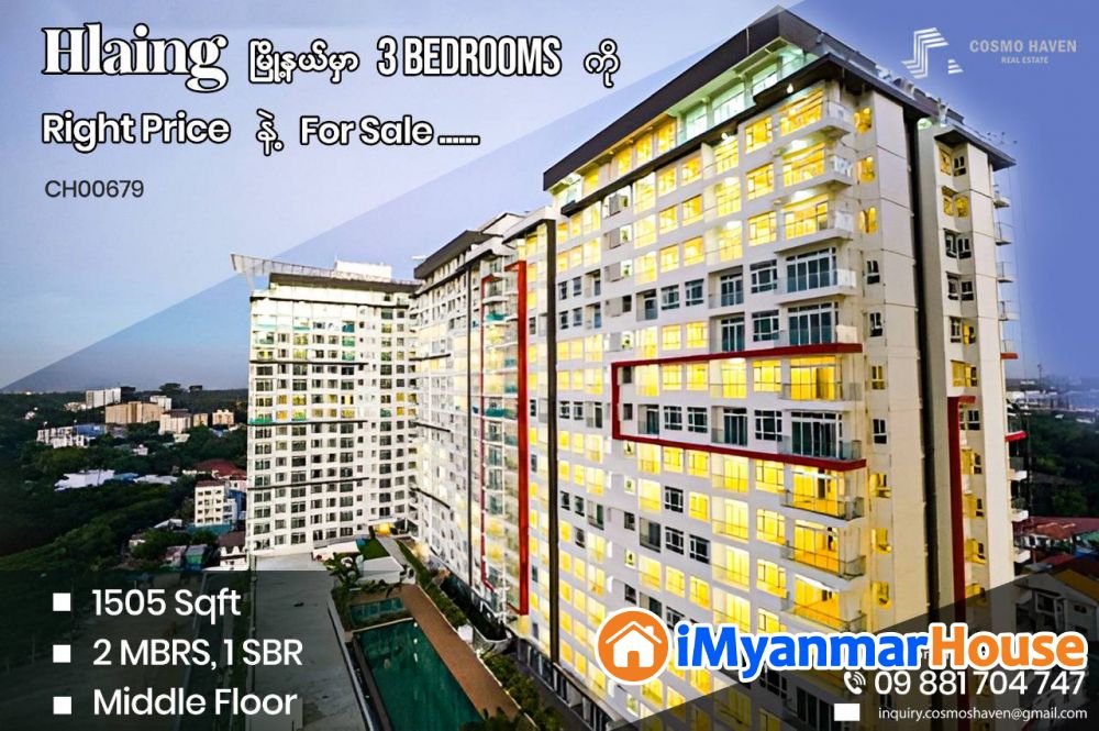 🗺📍Hlaing မြို့နယ် အချက်အခြာကျရာ Gems Condo မှာ 2 Master beds, 1 Single bed (3 bedrooms ) နှင့်အတူ 🏡
