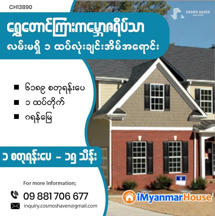 📍ဈေးနှုန်း - ၁စတုရန်းပေ ၁၅သိန်း