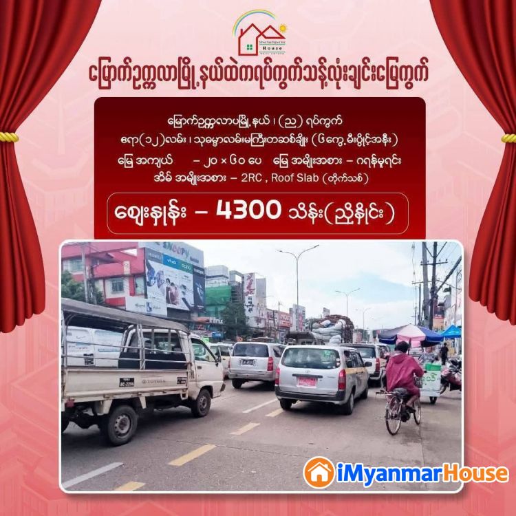 🔹မြေအကျယ် - 𝟐𝟎 𝐱 𝟔𝟎 ပေ