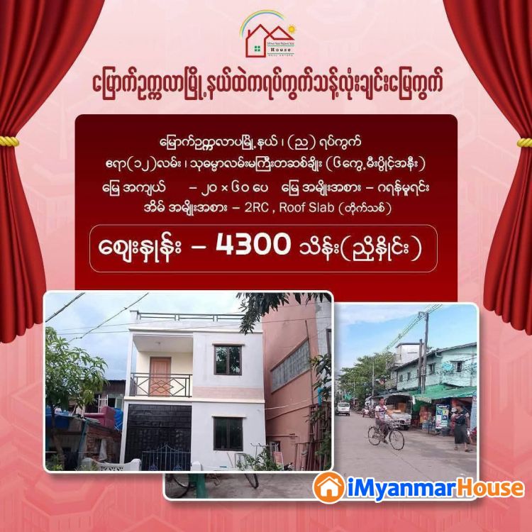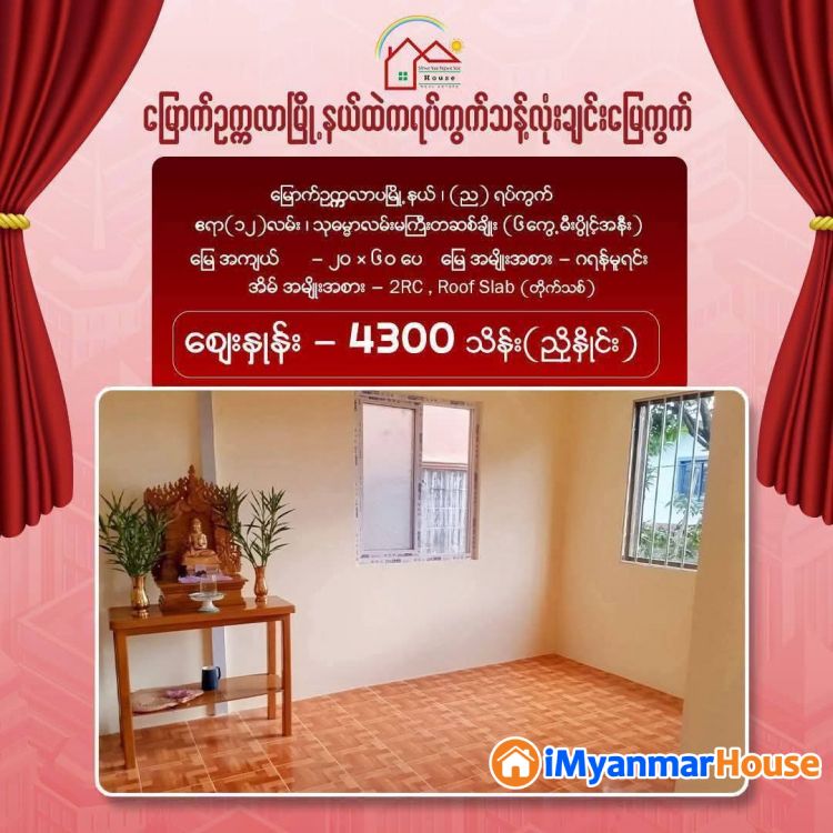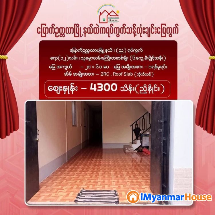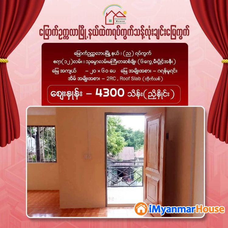 🔹အိမ်အမျိုးအစား - 𝟐 𝐑𝐂, 𝐑𝐨𝐨𝐟 𝐒𝐥𝐚𝐛(တိုက်သစ်)