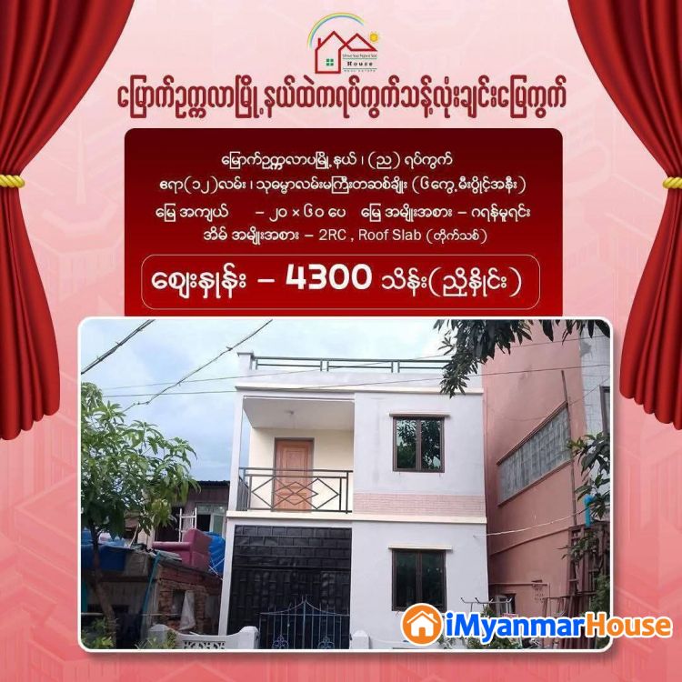 🏘️တိုက်လည်း အသစ်ဖြစ်တဲ့အပြင် 𝟐𝟎×𝟔𝟎 ပေကိုမှ (𝟐) ထပ်နဲ့ 𝐑𝐨𝐨𝐟 𝐒𝐥𝐚𝐛 ပါ ပါသေးတယ်ခင်ဗျာ။